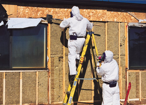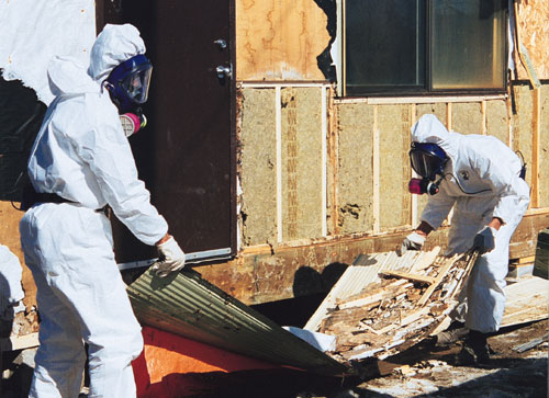 Where are moulds found?Moulds can be found almost anywhere outdoors and indoors. Indoor moulds usually originate from outside sources such as soil and vegetation. Moulds love dark, moist environments and can grow at room temperature on various construction materials including wallpaper, particleboard, ceiling tiles, drywall, and plywood. Construction workers can be potentially exposed to toxic spores when working on buildings with some sort of water damage from flooding, plumbing leaks, or leaks in the structure itself. Why are moulds of concern?In buildings with water damage or ongoing moisture problems, certain types of "water-loving" moulds may reproduce to higher than normal levels and potentially cause adverse health effects. Stachybotrys chartarum (formerly known as Stachybotrys atra) is of particular concern because it can be found in large colonies and can cause adverse health effects. Stachybotrys has gained special attention recently because it has been discovered in portable classrooms with ongoing moisture problems. It appears as small black patches and grows well on water-soaked cellulose material such as wallpaper, ceiling tiles, drywall, and insulation containing paper. In addition to Stachybotrys, construction personnel working in water-damaged buildings may be exposed to other types of toxic moulds such as Fusarium, Aspergillus, and Penicillium. What health effects can moulds cause?Air movement and the handling of contaminated material can release toxic spores into the atmosphere. These spores cause adverse health effects by producing toxic substances known as mycotoxins. Once released, toxic spores must come into contact with the skin or be inhaled before symptoms can develop. Not all exposed construction workers will develop symptoms.